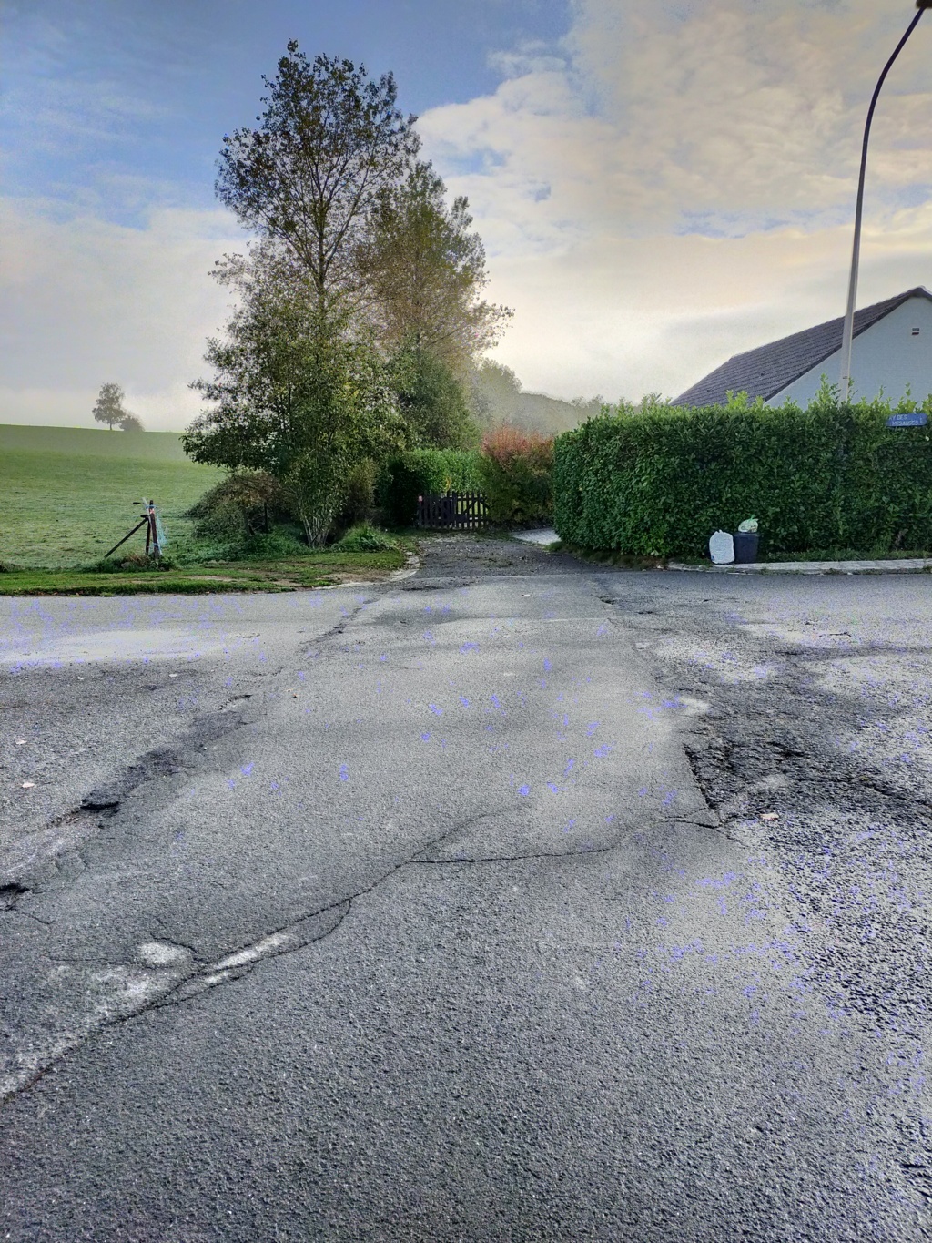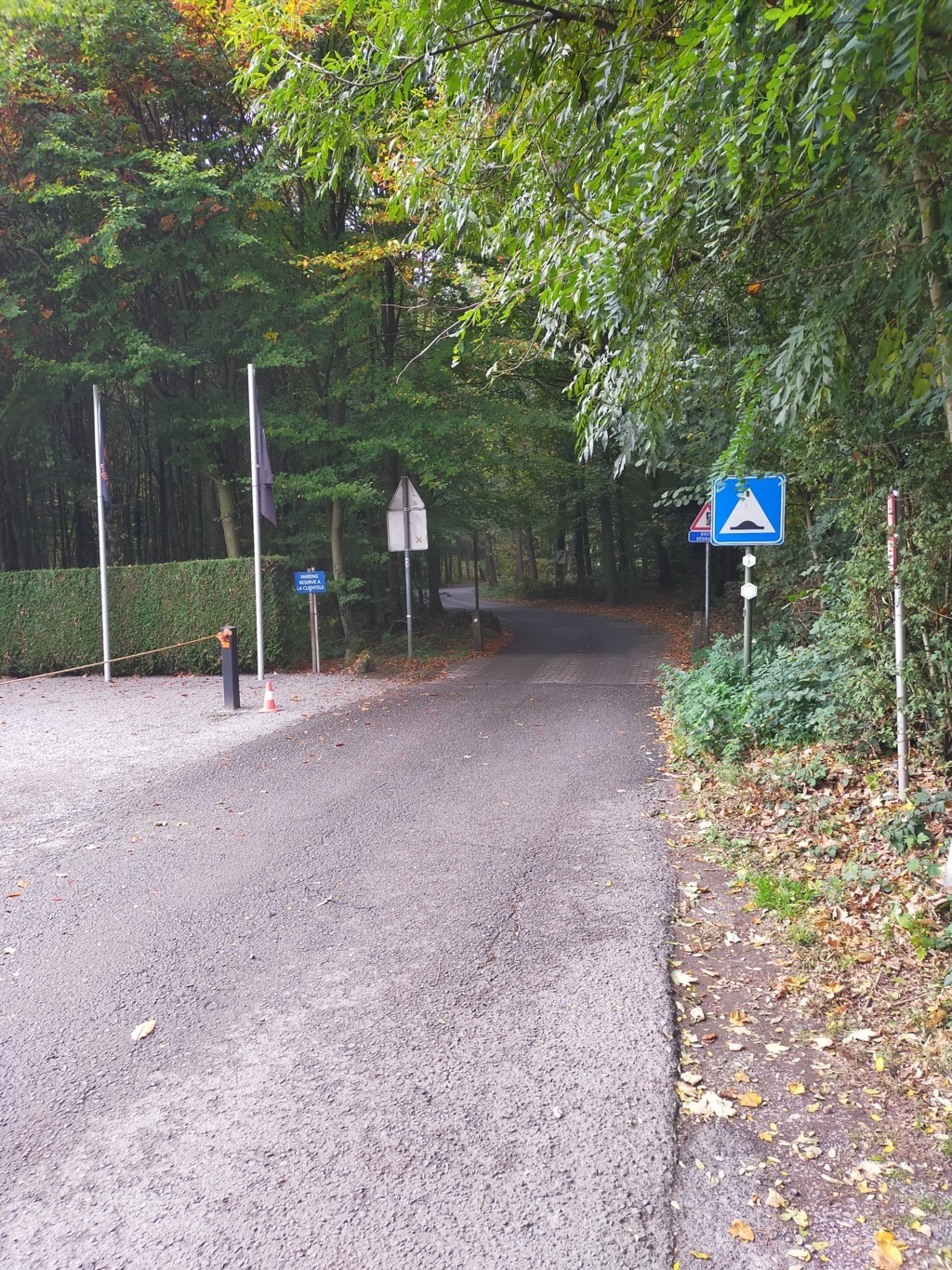 Vous suivez toujours ce sentier qui passe à la droite du bâtiment et vous continuez jusqu’au-dessus de la côte, vous rejoignez une route en macadam où vous prenez à droite.