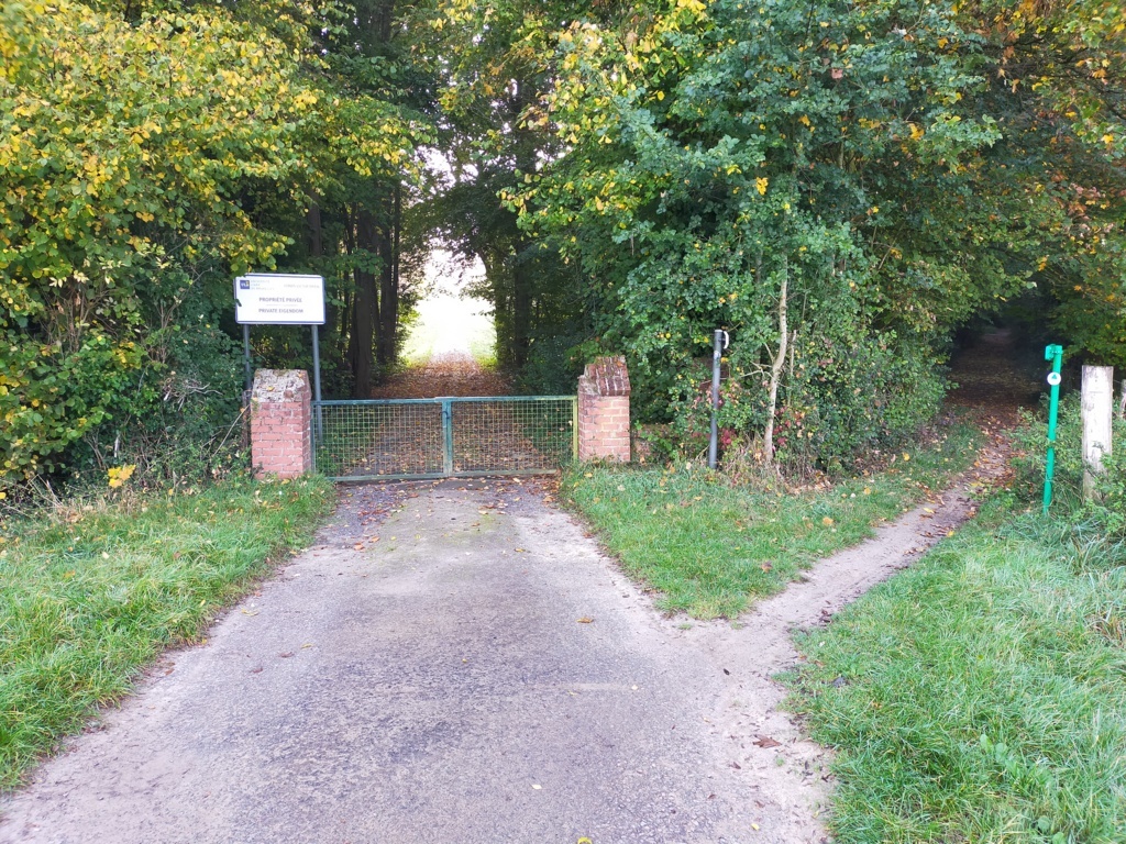 Comme tout cela est domaine privé, prenez à droite, le sentier qui entre dans le bois. Ce passage est parfois un peu difficile par temps de pluie, mais vous suivez le sentier jusqu’à arriver devant un bâtiment blanc. C’est la maison du garde du domaine de l’ULB. D’où le nom « Tour du garde ».